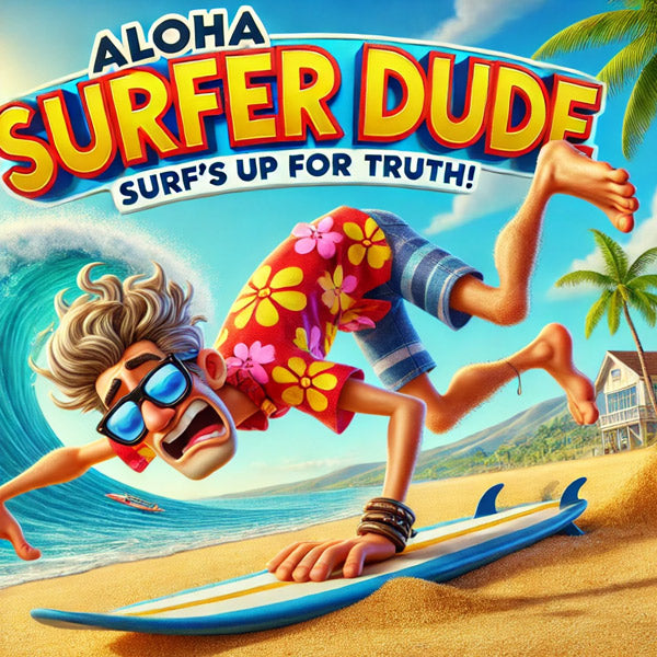 The “Aloha Surfer Dude” Al is a member of “SOS” (Surfers on Sand). Why? Because water is hard on his hair. Why else? Al fumbles his way along, and others try to help, usually unsuccessfully. This makes for good fun, and there is a real, although silly, message.